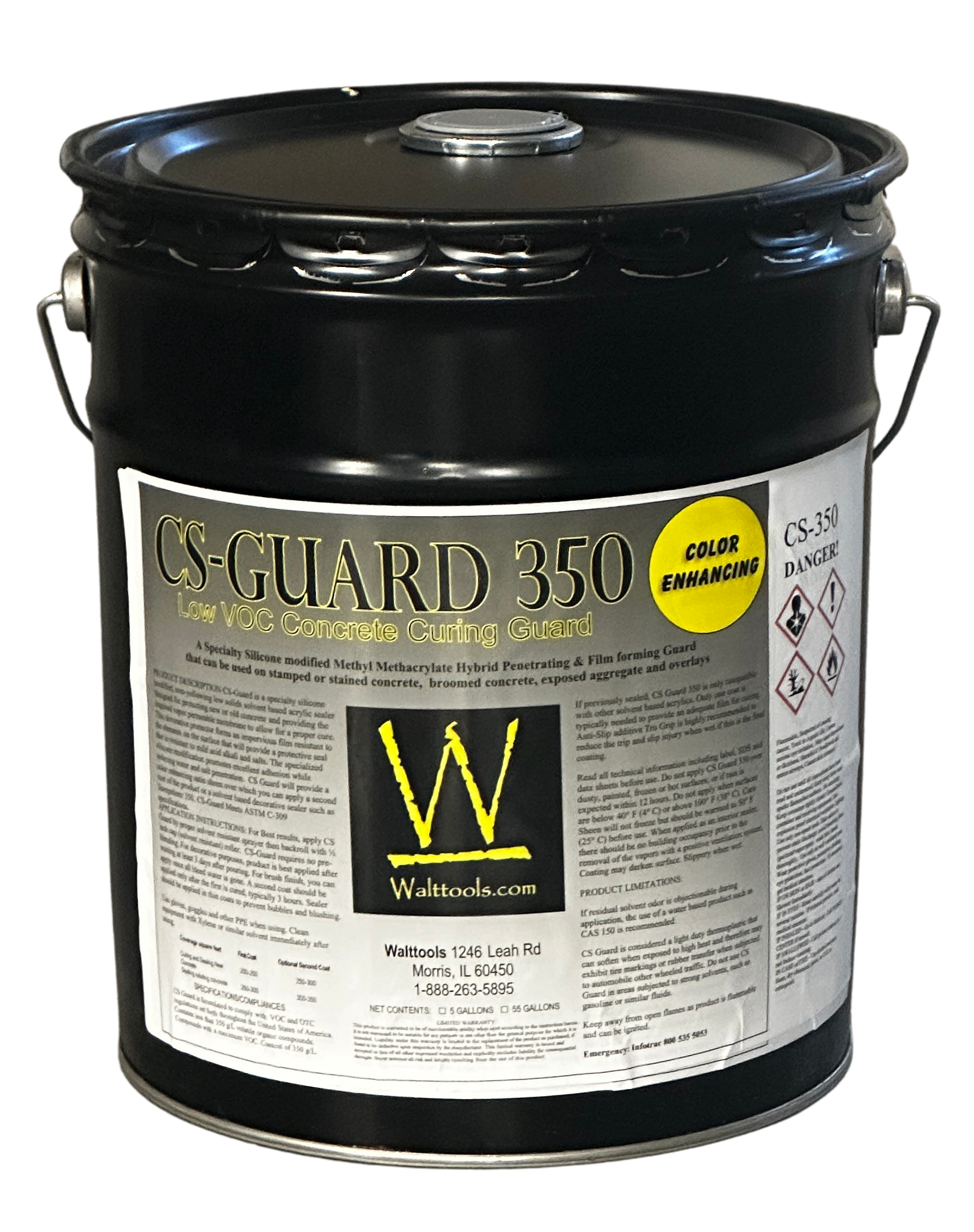CS-Guard, formerly named Cure Seal 350, is NOT your standard low-solids, penetrating curing agent for decorative or plain concrete. It is actively linked to a silicone resin providing even more benefit than siloxane type combos. It provides and even stronger bond reducing premature peeling. Ideal to use as a base sealer before applying a finish coat 7 days later. Great around pools. It provides a nice low to medium sheen yet all your color enhancement. There has been no changes to the product, only the name change.