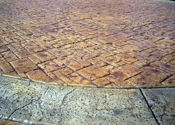Stamped concrete will require less workers and less hours to complete a project thus making it less expensive. Besides that the colors last longer. The sealer in most stamped concrete jobs will last longer, this saving you time and money with sealing projects. You don’t have to worry about grass or weeds growing in-between stones.